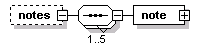 source | <xs:element name="notes" minOccurs="0"> <xs:complexType> <xs:sequence maxOccurs="5"> <xs:element name="note" type="SCHNoteInfo"/> </xs:sequence> </xs:complexType> </xs:element> |