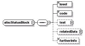 source | <xs:complexType name="StatusBlock"> <xs:sequence> <xs:element name="level" type="Error-NotificationLevel"/> <xs:element name="code" type="Error-NotificationCode"/> <xs:element name="text" type="itis:ITIScodesAndText" minOccurs="0"/> <xs:element name="relatedData" minOccurs="0"> <xs:complexType> <xs:choice> <xs:element name="subscribe" type="RequestStatus"/> <xs:element name="route" type="RouteStatus"/> <xs:element name="server" type="ServerStatus"/> <xs:element name="localStatusBlock" type="local:StatusBlock" minOccurs="0"/> </xs:choice> </xs:complexType> </xs:element> <xs:element name="furtherInfo" type="URL-Link" minOccurs="0"/> </xs:sequence> </xs:complexType> |