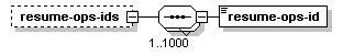 source | <xs:element name="resume-ops-ids" minOccurs="0"> <xs:complexType> <xs:sequence maxOccurs="1000"> <xs:element name="resume-ops-id" type="CPT-SerialNumber"/> </xs:sequence> </xs:complexType> </xs:element> |